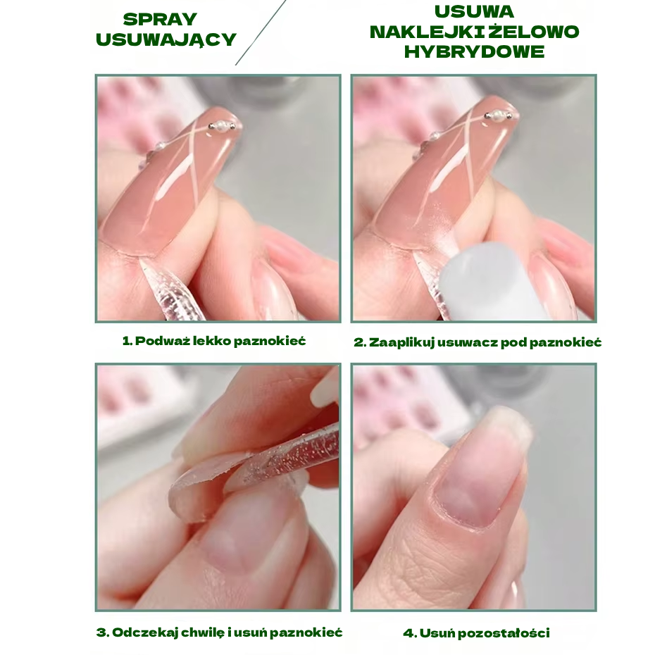 Absolutnie nie! Nasz produkt jest całkowicie bezpieczny. Możesz być pewna: Twoje piękne paznokcie pozostaną nienaruszone i zadbane nawet po jego usunięciu.